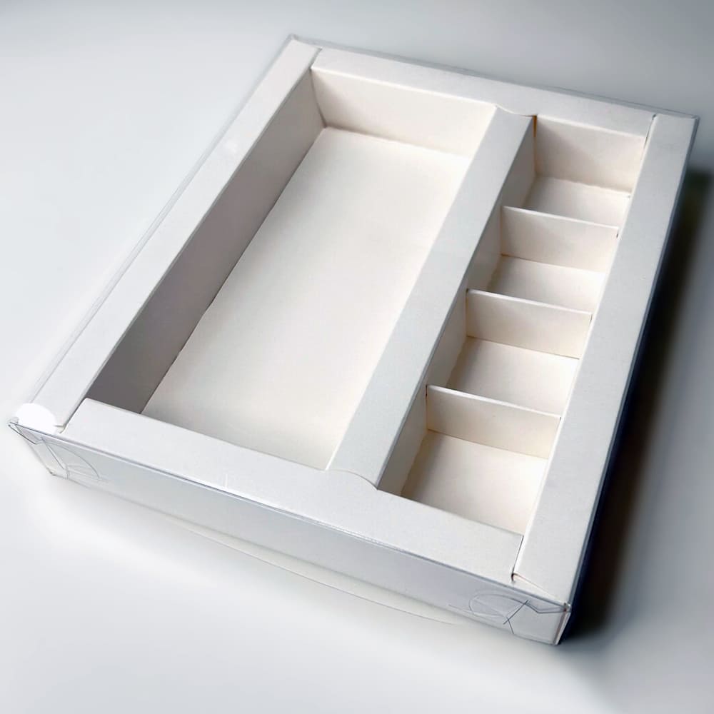Коробка для 4 конфет и плитки шоколада с окном (белая) (6ч)