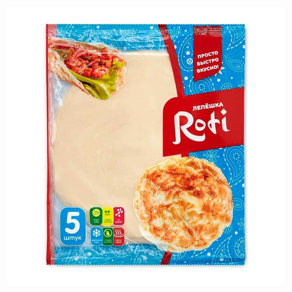 Замороженная лепёшка Roti , после приготовления может быть как самостоятельным блюдом, так и основой многих блюд (сэндвичей, пиццы, роллов, различных закусок и блюд). Обжарьте лепёшку Roti не размораживая на любой жарочной поверхности с обеих сторон (без добавления масла) до золотистой корочки, в течение 2х минут. Используйте для начинки любые ингредиенты по вкусу.