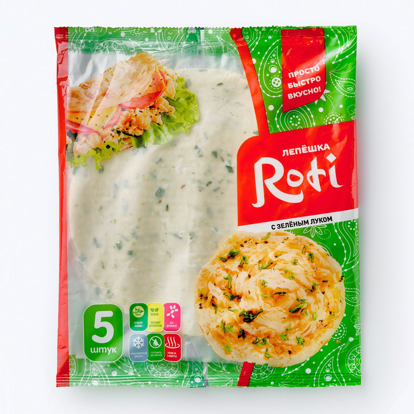 Лепешка «ROTI» с Зеленью, 450г, 5шт (Роти, Халяль)