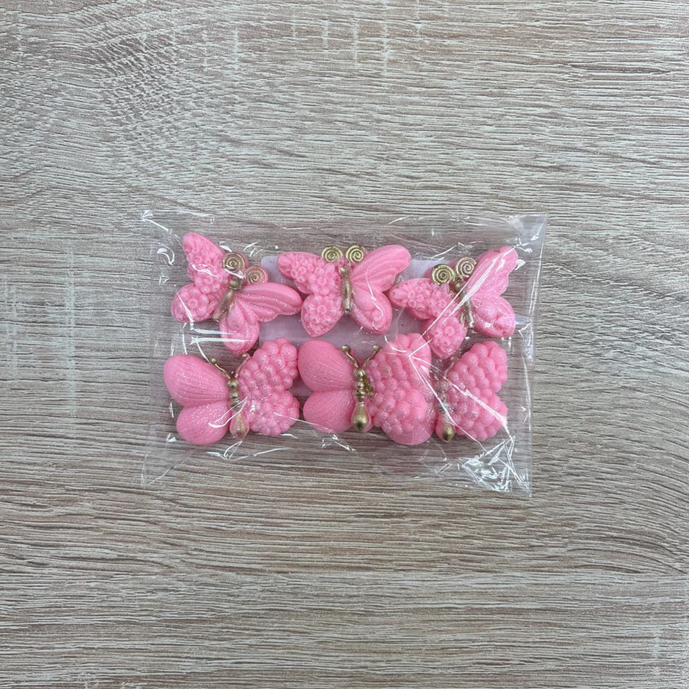 Набор бабочек жемчуг 2Д розовые из глазури, 6шт